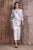 White floral and bird placement print kurti V neck with black pipin detailing teamed with straight pants